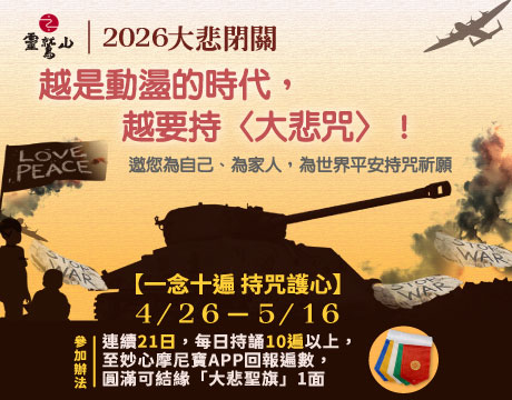 AI 時代速度太快,讓你感到心累焦慮嗎?以音聲修持,淨化內在,實踐慈悲人生讓大悲咒成為你的心靈防火牆!2026大悲閉關講座,給AI世代的一帖慈悲良方。