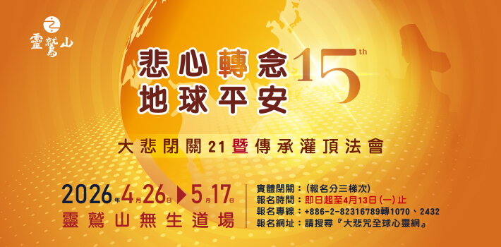 成為觀音行者 灌頂不只是一個儀式,而是一個修法的緣起、一個傳承的緣起,我也期勉弟子們從灌頂之後,每天都要不間斷修法,讓觀音的傳承確實落實下來,希望每一位弟子都成為如實的觀音行者,因為靈鷲山也是如實的觀音道場。 2025-11-14 即時快訊 即時快訊 2025-11-14 成為觀音行者 灌頂不只是一個儀式,而是一個修法的緣起、一個傳承的緣起,我也期勉弟子們從灌頂之後,每天都要不間斷修法,讓觀音的傳承確實落實下來,希望每一位弟子都成為如實的觀音行者,因為靈鷲山也是如實的觀音道場。