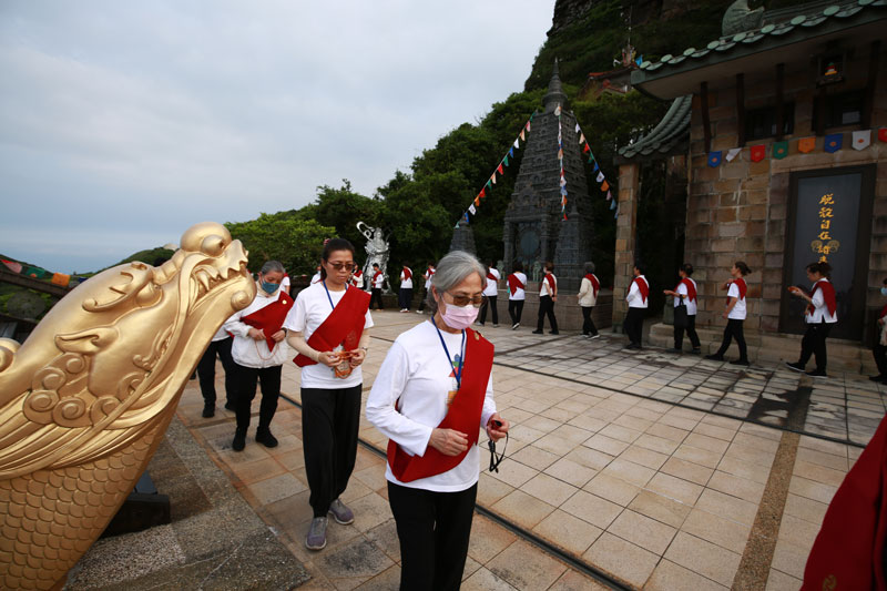 法師也提到,每一年大悲閉關圓滿時都會巡山,學員也會繞行十一面觀音及大殿等處;從去年開始,更安排「山海天持咒」,閉關學員可在山海間持誦〈大悲咒〉。只要可以懸掛旗幟的地方,志工菩薩都會盡量懸掛。〈大悲咒〉的梵音隨風流轉,迴盪於一面面飄揚的五色旗之間,使其承載著持咒的願力;隨著風的吹拂,這份力量自然流動,讓經過的人得到加持。